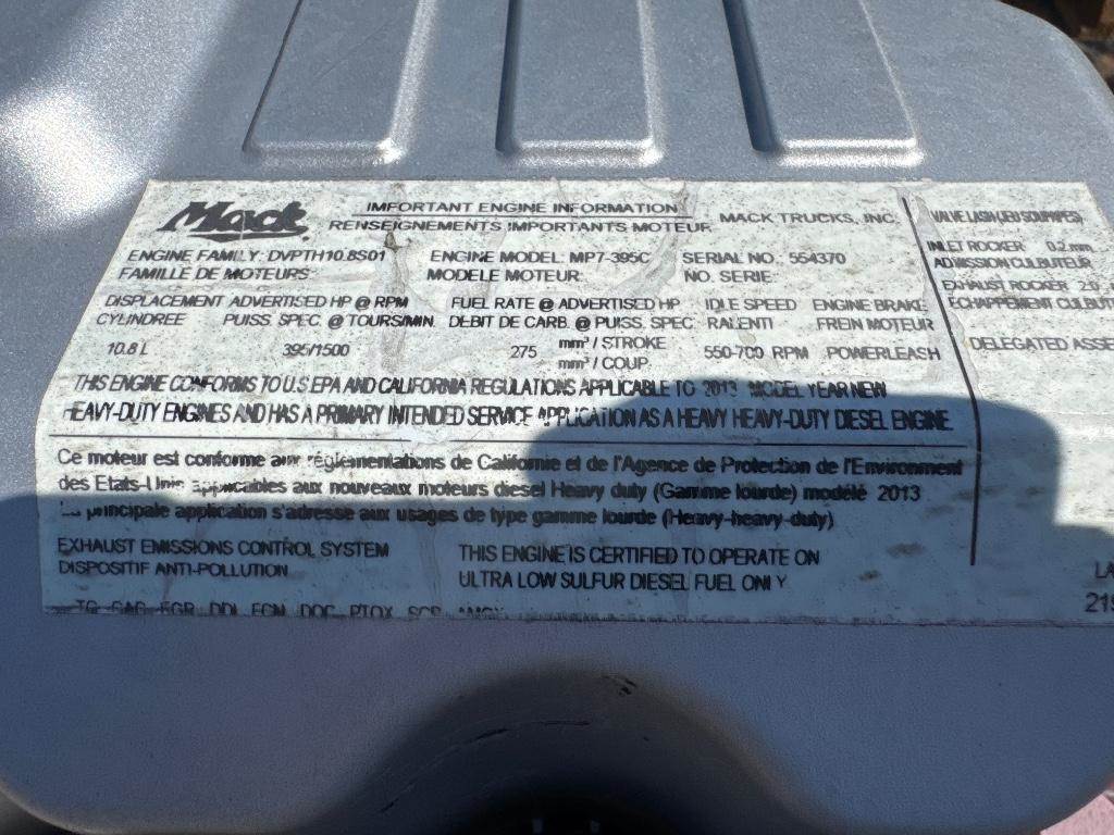 Mack MP7-395C Engine Family: DVPTH10.8S01 SN: 554370